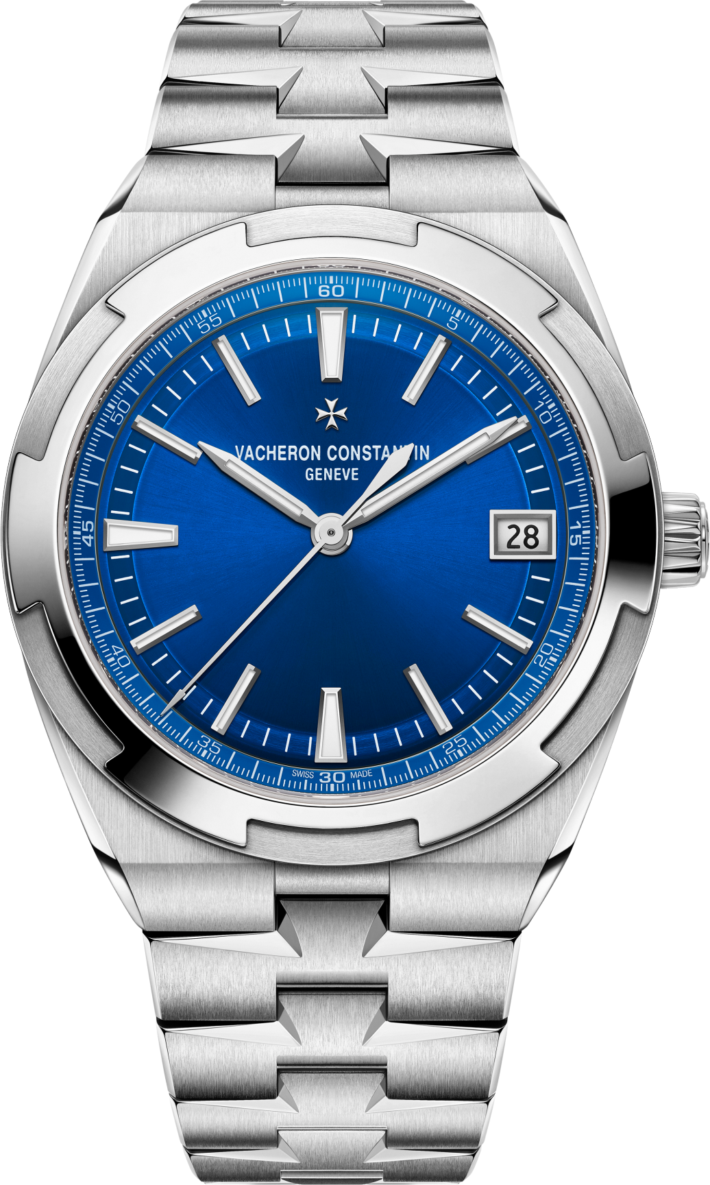 Hoàn toàn phù hợp với lối sống năng động, chiếc đồng hồ thép này sở hữu bộ máy tự động với quả lắc bằng vàng 22K, lấy cảm hứng từ hoa gió, một sự tôn vinh tinh thần du lịch. Chữ thập Malta, biểu tượng của Vacheron Constantin, được khắc họa tinh tế trong thiết kế của vành bezel và dây đeo thép. Nhờ khóa cài và hệ thống ba dây đeo dễ dàng thay thế – thép, da và cao su – chiếc đồng hồ có thể được cá nhân hóa theo ý muốn của chủ sở hữu. Đường kính 41 mm. Độ dày 10,69 mm. Khả năng chống nước 15 bar (150 m). Khả năng chống từ tính (ký hiệu “Chống từ tính” trên mặt sau vỏ đồng hồ): Có. Mặt sau bằng kính sapphire trong suốt. Mặt số màu xanh lam sơn mài mờ, vạch chỉ phút bên trong hình tròn mờ và vạch chỉ phút bên ngoài hoàn thiện bằng nhung. Hiển thị ngày ở vị trí 3 giờ. Kim giờ/phút và vạch chỉ giờ bằng vàng 18K được đánh dấu bằng SuperLuminova® màu xanh lam. Có thể thay đổi dây đeo: Có. Số lượng dây đeo: 3. Chất liệu dây đeo: Da bê sần (màu xanh đậm), thép không gỉ (đánh bóng/mờ), cao su (màu xanh đậm). Loại khóa: Khóa gập ba. Chất liệu khóa: Thép không gỉ. Xuất xứ đồng hồ: Thụy Sĩ. Chứng nhận: Dấu hiệu Geneva. Năng lượng: Tự động lên dây. Chức năng: Giờ, Ngày hiển thị qua ô cửa sổ, Giây trung tâm, Phút. Đường kính: 30,6 mm. Độ dày: 4,7 mm. Số lượng bộ phận: 172. Số lượng chân kính: 37. Thời gian dự trữ năng lượng: 60 giờ. Tần số: 28800 V.P.H. (4 Hz)