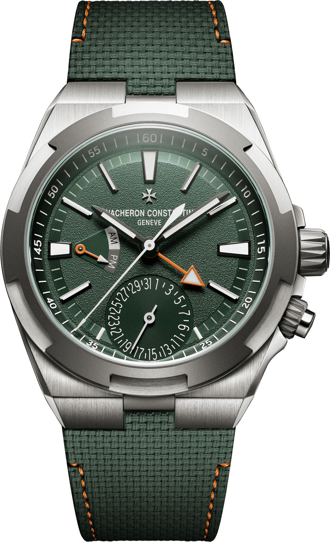 Là hậu duệ trực tiếp của chiếc đồng hồ được chế tạo cho nhiếp ảnh gia kiêm nhà thám hiểm Cory Richards, và đã được thử nghiệm kỹ lưỡng trong điều kiện khắc nghiệt trong chuyến leo núi Everest năm 2019 của ông, chiếc Overseas Dual Time Cardinal Points có nhiều màu sắc khác nhau. Vỏ 41mm, dây đeo tích hợp và khóa gập có thể thay thế đều được làm bằng titan, được lựa chọn vì độ nhẹ và độ bền của vật liệu này. Vẻ đẹp thẩm mỹ độc đáo và hiệu năng cao của titan được tôn lên bởi lớp hoàn thiện màu xám than mờ trên vành bezel, núm vặn và vòng nút bấm. Nó tạo ra một sự tương phản tinh tế làm nổi bật các đường cắt khuyết, gợi nhớ hình dạng của chữ thập Malta trên vành bezel đặc trưng của Overseas. Quan sát kỹ hơn mặt số sẽ mời gọi người dùng từ từ khám phá các chi tiết của nó, với sự kết hợp các lớp hoàn thiện mang lại chiều sâu và sự tinh tế. Kim màu cam chỉ múi giờ thứ hai và chức năng AM/PM tạo điểm nhấn tương phản cho mặt số, nhấn mạnh cá tính thể thao của chiếc đồng hồ. Chiếc đồng hồ có thể tùy chỉnh nhờ ba dây đeo dễ dàng thay thế – hai dây cao su và một dây titan. Đường kính 41 mm. Độ dày 12,2 mm. Khả năng chống nước 15 bar (150 m). Khả năng chống từ tính (ký hiệu “Chống từ tính” ở mặt sau đồng hồ): Có. Mặt sau: Mặt kính sapphire trong suốt. Mô tả mặt số: Mặt số màu xanh lá cây với ba lớp hoàn thiện: trung tâm hoàn thiện dạng hạt, vạch phút bên trong hình tròn hoàn thiện mờ, vạch phút bên ngoài hoàn thiện sơn mài. Các mặt số phụ hình xoắn ốc. Kim chỉ giờ và phút màu cam. Kim giờ/phút và vạch chỉ giờ bằng vàng trắng 18K được phủ chất phát quang SuperLuminova® màu xanh lam. Có thể thay đổi dây đeo. Chất liệu dây đeo: Titan (đánh bóng/mờ). Hệ thống khóa: Khóa gập ba (thép không gỉ và titan). Phụ kiện bổ sung: Cao su (Xanh lá cây), Cao su (Cam), Dây đôi. Xuất xứ đồng hồ: Thụy Sĩ. Chứng nhận: Dấu hiệu Geneva. Bộ máy: 5110 DT/2. Năng lượng: Tự động lên dây. Chức năng: Phút, múi giờ thứ 2 (hiển thị thời gian của múi giờ khác bằng kim giây hoặc bằng số), Ngày - đêm, Giờ, Ngày. Đường kính: 30,6 mm. Độ dày: 6 mm. Số bộ phận: 234. Số chân kính: 37. Thời gian dự trữ năng lượng: 60 giờ. Tần số: 28800 V.P.H. (4 Hz)