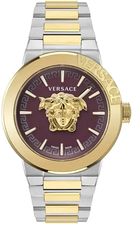 Vỏ đồng hồ bằng thép không gỉ mạ vàng với dây đeo bằng thép không gỉ hai tông màu (bạc và vàng). Vòng bezel cố định bằng thép không gỉ mạ vàng. Mặt số màu đỏ với kim và vạch chỉ giờ mạ vàng. Loại mặt số: Analog. Bộ máy quartz. Mặt kính sapphire chống trầy xước. Núm vặn kéo/đẩy. Nắp lưng kín. Hình dạng vỏ tròn, kích thước vỏ: 43 mm. Khóa gập với nút bấm mở. Chống nước ở độ sâu 50 mét / 165 feet.