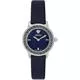 Vỏ thép không gỉ tông bạc với dây đeo bằng da màu xanh. Vành thép không gỉ tông bạc cố định. Mặt số màu xanh với kim và vạch chỉ giờ màu bạc. Kiểu mặt số: Analog. Bộ máy Quartz. Mặt kính sapphire chống trầy xước. Kiểu dáng tròn, kích thước vỏ: 30 mm. Khóa cài. Khả năng chống nước ở độ sâu 30 mét / 100 feet. Sản xuất tại Thụy Sĩ.