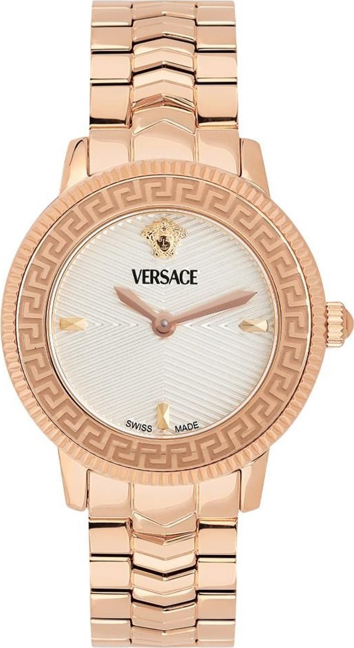 Vỏ và dây đeo bằng thép không gỉ tông vàng hồng. Vành bezel cố định bằng thép không gỉ tông vàng hồng. Mặt số màu trắng, kim và vạch chỉ giờ tông vàng hồng. Kiểu mặt số: Analog. Bộ máy Quartz. Mặt kính sapphire chống trầy xước. Kiểu dáng vỏ tròn, kích thước vỏ: 30 mm. Khóa cài. Khả năng chống nước ở độ sâu 30 mét / 100 feet. Sản xuất tại Thụy Sĩ