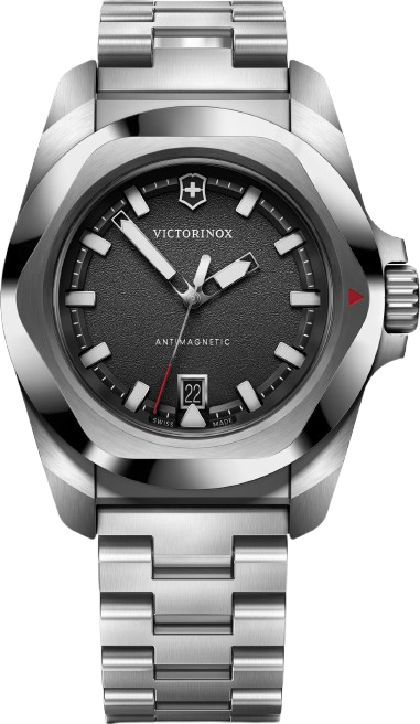 Một chiếc đồng hồ kế thừa di sản Swiss Army Knife™ nguyên bản, rồi được tái tạo với DNA thiết kế độc đáo hướng đến tương lai. Được chế tác và sản xuất tại Thụy Sĩ, đồng hồ thạch anh I.N.O.X. kết hợp độ chính xác với chức năng sử dụng hàng ngày. Mặt số mờ với các vạch chỉ giờ nổi và kim dạ quang giúp dễ dàng đọc giờ từ ngày sang đêm, cùng cửa sổ hiển thị ngày ở vị trí 6 giờ. Vành bezel được chải xước và đánh bóng tăng thêm sự tinh tế, trong khi dây đeo kim loại có thể thay đổi đảm bảo sự thoải mái và linh hoạt khi đeo. Chiều cao: 11 mm. Trọng lượng: 199 g. Chiều rộng càng: 21 mm. Đường kính: 41 mm. Xuất xứ: Thụy Sĩ. Niêm phong mặt sau: Nắp lưng vặn vít. Đồng hồ bấm giờ: Không. Khóa: Chốt gập. Xoay vành bezel: Vành bezel cố định. Hẹn giờ đếm ngược: Không. Ngày: Có. Đèn nền mặt số: Không. Kim phát quang: Có. Loại chuyển động: Chuyển động thạch anh analog Thụy Sĩ. Múi giờ thứ hai: Không. Khả năng chống nước: 20 ATM/200 M/660 FT. Chất liệu vỏ: Thép không gỉ. Hoàn thiện vỏ: Đánh bóng. Chất liệu vành bezel: Thép không gỉ. Hoàn thiện vành bezel: Đánh bóng-đánh bóng. Chất liệu mặt sau: Thép không gỉ. Hoàn thiện mặt số: Có vân. Chất liệu dây đeo: Thép không gỉ. Màu vỏ: Bạc. Màu vành bezel: Bạc. Màu mặt số: Đen. Màu dây đeo: Bạc