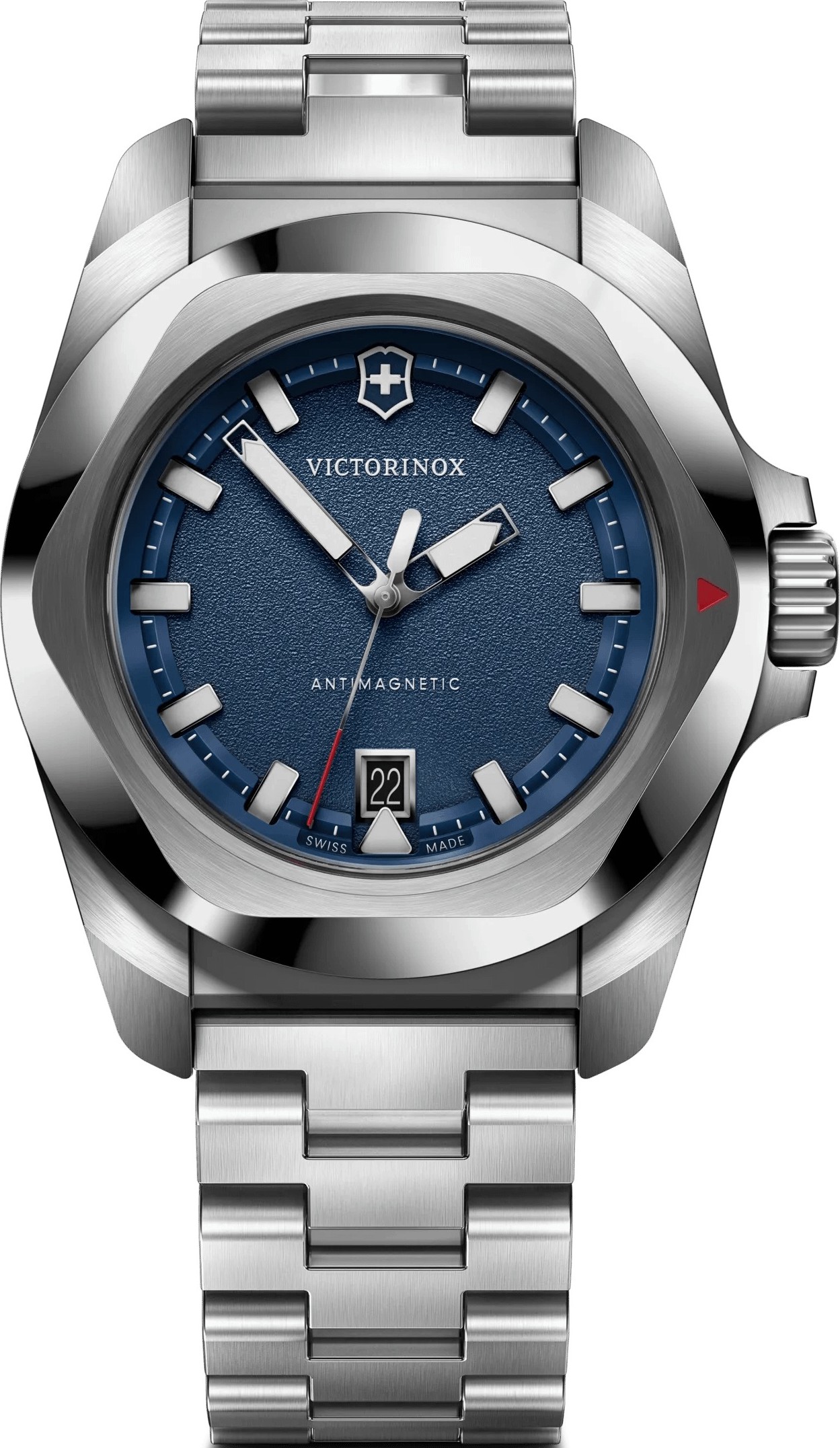 Một chiếc đồng hồ thể hiện di sản nguyên bản của dao quân đội Thụy Sĩ™ (Swiss Army Knife™), sau đó được tái tạo với DNA thiết kế độc đáo cho tương lai. Được thiết kế và sản xuất tại Thụy Sĩ, đồng hồ I.N.O.X. Quartz kết hợp độ chính xác với chức năng sử dụng hàng ngày. Đồng hồ có mặt số mờ với các vạch chỉ giờ nổi và kim dạ quang giúp dễ đọc cả ngày lẫn đêm, cùng với hiển thị ngày ở vị trí 6 giờ. Vòng bezel được chải và đánh bóng tăng thêm vẻ tinh tế, trong khi dây đeo kim loại có thể thay thế đảm bảo sự linh hoạt và thoải mái khi đeo. Chiều cao: 11 mm. Trọng lượng: 199 g. Chiều rộng càng nối dây: 21 mm. Đường kính: 41 mm. Xuất xứ: Thụy Sĩ. Nắp lưng: Nắp lưng vặn. Khóa: Khóa gập. Vòng bezel: Vòng bezel cố định. Hiển thị ngày: Có. Kim dạ quang: Có. Loại máy: Máy quartz analog Thụy Sĩ. Khả năng chống nước: 20 ATM/200 M/660 FT