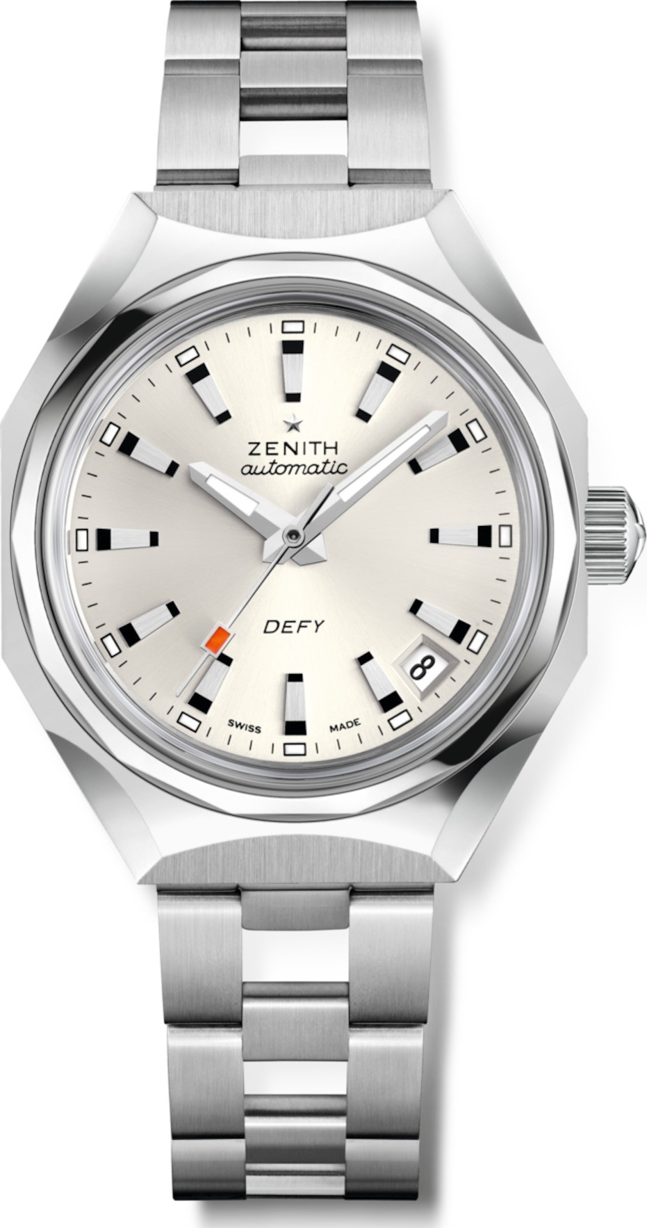 Một bản sao trung thực của một trong những chiếc đồng hồ đeo tay DEFY đầu tiên từ năm 1969. Được chế tác trong vỏ thép không gỉ hình bát giác 37mm với vành bezel 14 cạnh và kết hợp với mặt số màu bạc có họa tiết tia nắng. Được trang bị bộ máy tự động ELITE 670 do hãng sản xuất. Đi kèm với dây đeo thép hình thang đặc trưng. Bộ máy Elite. Số linh kiện 144. Tần số 28.800 VpH (4 Hz). Thời gian dự trữ năng lượng khoảng 50 giờ. Giờ và phút ở trung tâm. Kim giây trung tâm. Hiển thị ngày ở vị trí 4:30. Chất liệu Thép không gỉ. Đường kính 37.00. Khả năng chống nước 30 ATM. Mặt số Màu bạc, họa tiết tia nắng.