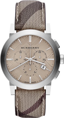 - Đồng hồ nam dây đeo vải kiểm tra mặt số ấn tượng của Burberry Brown