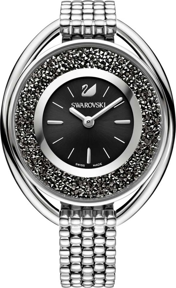 Thêm chút lấp lánh với chiếc đồng hồ Swarovski thời trang có hình bầu dục sáng tạo này. Thông số kỹ thuật: vỏ - vòng ngoài bằng thép không gỉ hình bầu dục, vòng trong hình tròn chứa khoảng 1'700 tinh thể vàng nhạt kim loại, 37×43mm; mặt số - tia mặt trời màu đen với các vạch chỉ số được áp dụng và logo Swan ở vị trí 12 giờ; dây đeo - thép không gỉ, 19 cm; phong trào - thạch anh Thụy Sĩ.