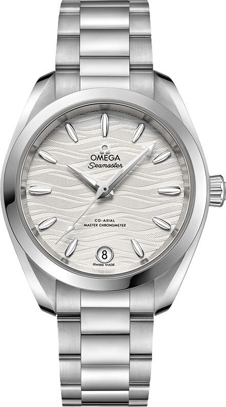 Seamaster Aqua Terra dành cho nữ là định nghĩa thực sự của sự thanh lịch. Tinh thần đại dương của nó có thể được nhìn thấy xuyên suốt thiết kế, trong khi những vật liệu và bộ máy tốt nhất đã được sử dụng trong quá trình sáng tạo. Ở mẫu này, vỏ 34 mm đối xứng và dây đeo tích hợp được chế tác từ thép không gỉ. Mặt số màu bạc opaline gợn sóng có cửa sổ ngày ở vị trí 6 giờ, kim mạ rhodium và các cọc số bằng vàng trắng 18K có hình dạng giống thân thuyền buồm. Đồng hồ được vận hành bởi bộ máy OMEGA Master Chronometer Calibre 8800, được chứng nhận theo tiêu chuẩn cao nhất của ngành bởi Viện Đo lường Liên bang Thụy Sĩ (METAS). Chống từ. Đồng hồ bấm giờ. Hiển thị ngày. Mặt sau trong suốt. Giữa các vấu: 16 mm. Vòng đeo tay: thép. Vỏ: Thép. Đường kính vỏ: 34 mm. Màu quay số: Bạc. Pha lê: Tinh thể sapphire dạng vòm chống trầy xước được xử lý chống phản chiếu ở cả hai mặt. Khả năng chống nước: 15 bar (150 mét / 500 feet)