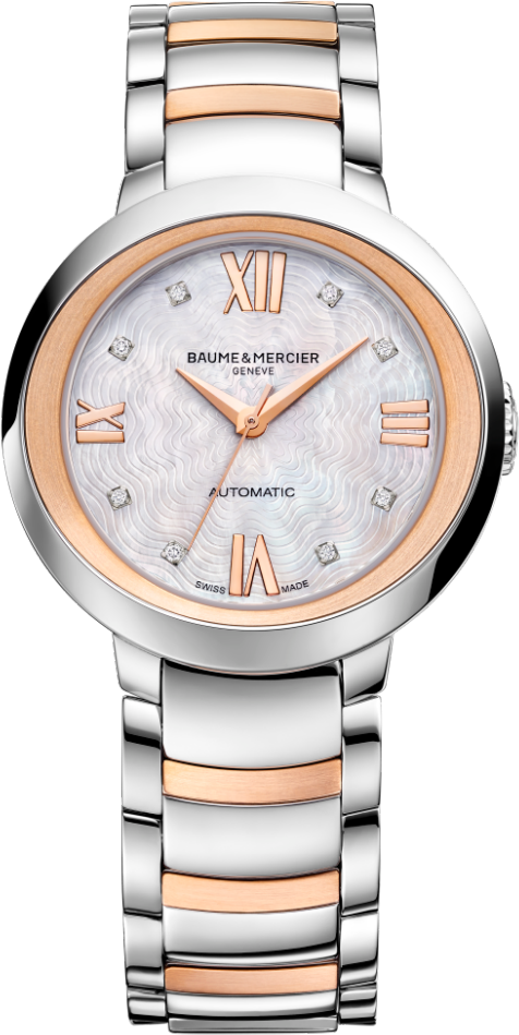 Là chiếc đồng hồ tròn 30 mm, nạm kim cương dành cho phụ nữ, Promesse 10239 đi kèm với bộ chuyển động tự động của Swiss Made có chức năng ngày và được cung cấp trên một vòng đeo tay bằng thép hai tông màu.