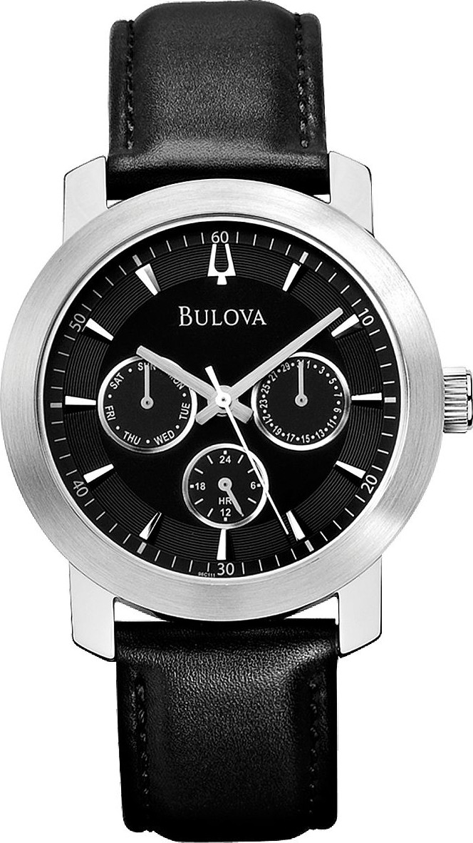 Đồng hồ Bulova Gents Dress dành cho nam này được làm từ thép không gỉ và được cung cấp năng lượng bởi bộ máy thạch anh bấm giờ. Nó được buộc chặt bằng dây đeo bằng da màu đen và có mặt số màu đen. Đồng hồ có chức năng lịch ngày.