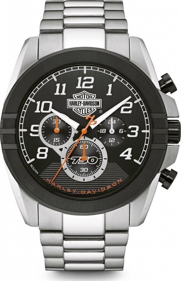 Từ Bộ sưu tập Đường phố. Chức năng bấm giờ 6H. Mặt số nhiều lớp màu đen tuyền với logo hình khiên thương hiệu, chữ số màu trắng, kim phủ dạ quang và tính năng ngày cách điệu ở mốc 3 giờ. Kim giây có đối trọng HD™ đặc trưng. Vỏ và vòng đeo tay bằng thép không gỉ hai tông màu bóng bẩy được hoàn thiện với tông màu bạc. Chụp lại. Nhấn đúp vào chốt gấp có khóa an toàn.
