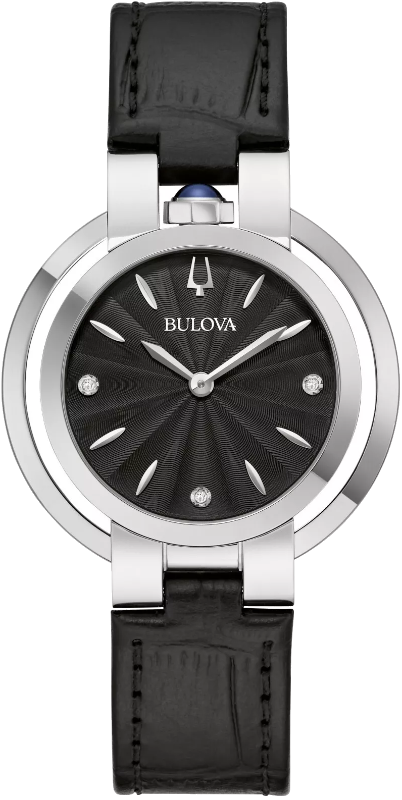 Ghi lại 100 năm thanh lịch với sự tinh tế giản đơn của chiếc đồng hồ Bulova này từ Bộ sưu tập Rubaiyat dành cho phụ nữ. Tiếp nối truyền thống bắt đầu từ năm 1917 khi Bulova giới thiệu những thiết kế đầu tiên dành cho phụ nữ, chiếc đồng hồ này có vỏ thép không gỉ tông bạc đánh bóng đặc biệt với núm điều chỉnh 12 giờ độc đáo được đính một viên đá spinel màu xanh tổng hợp. Bên dưới tinh thể sapphire hình vòm, mặt số màu đen có kết cấu phức tạp được đính ba viên kim cương sáng, các vạch chỉ giờ và kim đánh bóng. Chiếc đồng hồ dành cho phụ nữ này đi kèm với dây đeo bằng da cá sấu màu đen nổi với khóa cài mở, mang đến vẻ đẹp duyên dáng và tinh tế vượt thời gian để bổ sung cho mọi bộ trang phục sang trọng.