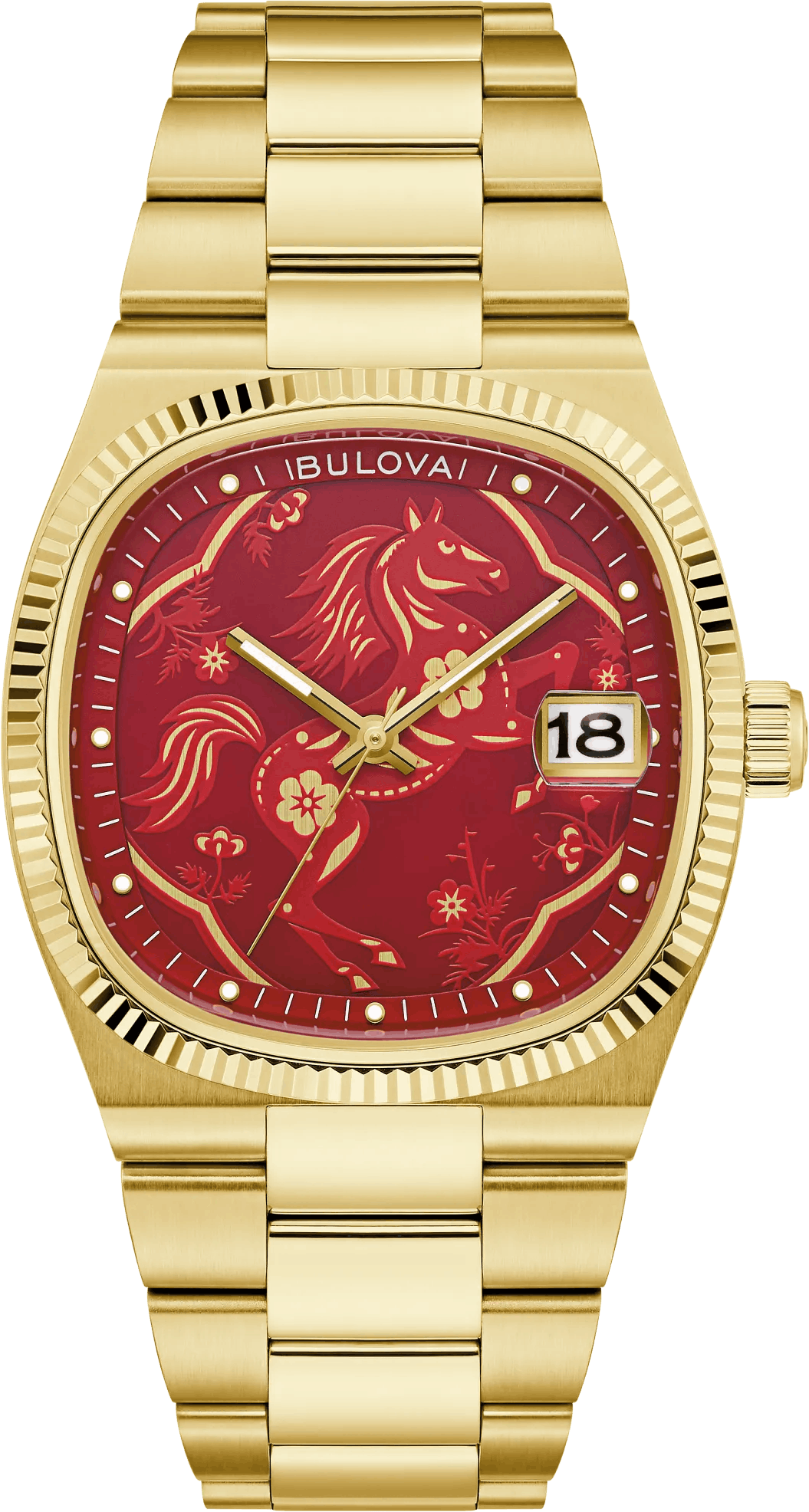 Bulova tri ân 12 con giáp Trung Quốc với phiên bản giới hạn mới đầy quyến rũ của chiếc đồng hồ nam Super Seville biểu tượng của hãng. Được nhấn mạnh bởi vỏ thép không gỉ mạ vàng với vành bezel khía hình đồng xu và dây đeo phù hợp, năm Ngựa được thể hiện qua mặt số nhiều lớp với màu sắc truyền thống Trung Quốc là đỏ và vàng, mang đến hình ảnh một chú ngựa đang vươn mình giữa những họa tiết hoa lá sống động, tạo nên một tác phẩm nghệ thuật đa chiều. Bên dưới nắp lưng được đánh số riêng và khắc chữ Hán cách điệu tượng trưng cho từ "ngựa", chiếc đồng hồ được trang bị bộ máy Precisionist độc quyền của thương hiệu, một cơ chế thạch anh 8 chân kính độ chính xác cao mang tính cách mạng, dao động ở tần số đáng kinh ngạc 262kHz, chính xác đến từng giây mỗi năm với khả năng chống chịu thay đổi nhiệt độ được cải thiện và kim giây chuyển động mượt mà. Mang trong mình biểu tượng của sự giàu có và thịnh vượng, chiếc đồng hồ nam Bulova phiên bản giới hạn 888 chiếc này sẽ làm nổi bật bất kỳ bộ sưu tập nào. Mặt số màu đỏ với điểm nhấn vàng. Kim và vạch chỉ giờ phát sáng. Vỏ 37,5 mm bằng thép không gỉ mạ vàng. Khoảng cách giữa các càng 11 mm. Dây đeo bằng thép không gỉ. Khóa gập với nút bấm. Mặt kính sapphire chống phản chiếu, chống va đập và vỡ - lớp phủ chống phản chiếu làm lệch hướng ánh sáng. Trọng lượng (g) 83. Bộ máy NM10; HPQ Precisionist; Bộ máy có tinh thể thạch anh 3 chấu với tần số 262 kHz, nhanh gấp 8 lần so với thạch anh tiêu chuẩn, cho độ chính xác vài giây mỗi năm. Chức năng Lịch; HPQ Precisionist; 3 kim.