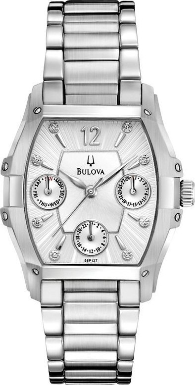 Chiếc đồng hồ bấm giờ thanh lịch dành cho nữ của Bulova này có vỏ bằng thép không gỉ với vòng đeo tay phù hợp. Thiết kế đơn sắc có vẻ đơn giản, với các mặt số phụ chỉ thứ và ngày và tinh thể khoáng để bảo vệ mặt đồng hồ, phù hợp với hầu hết mọi trang phục từ bình thường đến công sở và khóa gập đôi dễ sử dụng nhưng an toàn quanh cổ tay.