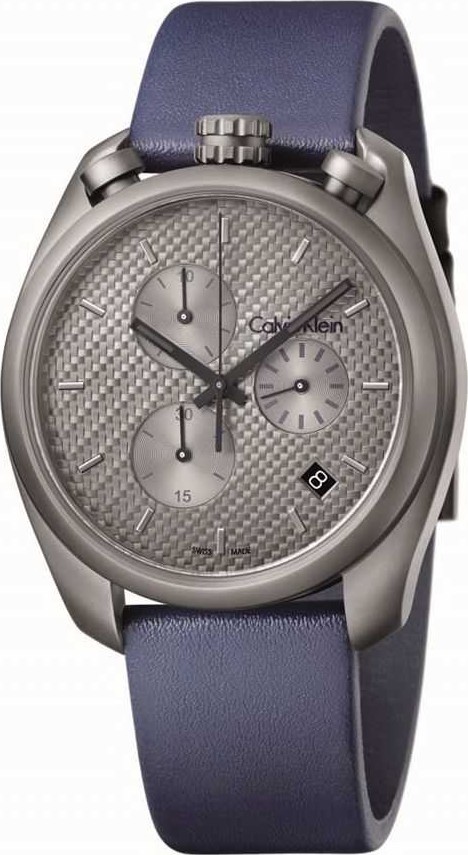 Vỏ thép không gỉ PVD màu xám với dây đeo bằng da màu xanh. Viền PVD màu xám cố định. Mặt số bằng sợi carbon màu xám với kim màu đen và vạch chỉ giờ. Loại quay số: Analog. Bàn tay và điểm đánh dấu phát quang. Hiển thị ngày ở vị trí giữa 4 và 5 giờ. Chronograph - ba mặt số phụ hiển thị: 60 giây, 30 phút và 1/10 giây.