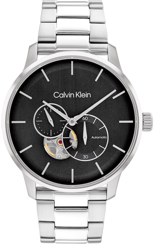 Thương hiệu đồng hồ Calvin Klein. Kiểu dáng đồng hồ: Thời trang. Bộ máy: Tự động. Độ kháng nước: 30. Kiểu dây đeo: Vòng đeo tay. Màu dây đeo: Bạc. Chất liệu dây đeo: Thép không gỉ. Đường kính mặt đồng hồ: 42. Hình dạng mặt đồng hồ: Tròn. Màu mặt đồng hồ: Đen. Chất liệu vỏ đồng hồ: Thép không gỉ.