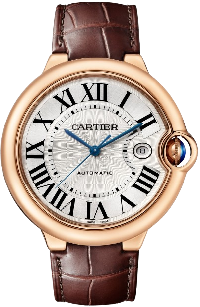 Với đồng hồ Ballon Bleu, Cartier mang đến một tầm nhìn độc đáo về sự tròn trịa, những đường cong và sự hài hòa. Một biểu tượng đồng hồ vượt thời gian với vẻ tròn trịa thanh lịch ôm trọn làn da. Đồng hồ Ballon Bleu de Cartier 42 mm. Bộ máy cơ tự động lên dây cót. Bộ máy Caliber 1847 Mc. Vỏ vàng hồng 750/1000. Núm vặn khía răng cưa đính đá sapphire cabochon. Mặt số opaline sơn mài guilloché bạc. Kim hình thanh kiếm bằng thép xanh. Mặt kính sapphire. Dây đeo da cá sấu màu nâu. Khóa cài vàng hồng 750/1000 có thể thay thế. Cửa sổ lịch ở vị trí 3 giờ. Độ dày: 13 mm. Khả năng chống nước lên đến 3 bar (khoảng 30 mét/100 feet)