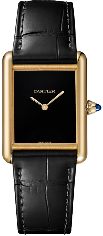 Được thiết kế bởi Louis Cartier vào năm 1917, đồng hồ Tank là biểu tượng của ngành chế tác đồng hồ hiện đại. Thiết kế tinh tế của chiếc đồng hồ đeo tay này, kết hợp hình học với tỷ lệ chính xác, tạo nên bản sắc táo bạo. Dễ dàng nhận ra và luôn bắt kịp thời đại, Tank đã được tái hiện trong hơn một thế kỷ với vô số biến thể vẫn trung thành với tinh thần của thiết kế ban đầu: Tank Cintrée, Tank Chinoise, Tank Américaine, Tank Française... Đồng hồ Tank Louis Cartier. Mẫu lớn. Bộ máy cơ học được chế tác với khả năng lên dây cót thủ công. Vỏ bằng vàng vàng 750/1000. Núm vặn đính hạt sapphire. Mặt số sơn mài đen. Kim hình thanh kiếm bằng thép mạ vàng. Mặt kính khoáng. Dây đeo bằng da cá sấu đen mờ. Khóa Ardillon bằng vàng vàng 750/1000. Kích thước vỏ: 33,7 mm x 25,5 mm. Độ dày: 0,25 inch. Khả năng chống nước lên đến 3 bar (khoảng 30 mét/100 feet). Chuyển động cơ học lên dây cót bằng tay