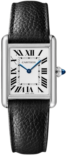 Được thiết kế bởi Louis Cartier vào năm 1917, đồng hồ Tank là biểu tượng của ngành chế tác đồng hồ hiện đại. Thiết kế thanh lịch của chiếc đồng hồ đeo tay này, kết hợp hình học với tỷ lệ chính xác, định hình bản sắc táo bạo của nó. Dễ dàng nhận ra ngay lập tức và luôn bắt kịp thời đại, Tank đã được tái hiện trong hơn một thế kỷ với vô số biến thể vẫn trung thành với tinh thần của thiết kế ban đầu: Tank Cintrée, Tank Chinoise, Tank Américaine, Tank Française...Tank Must watch, mẫu lớn, bộ máy quang điện SolarBeat™. Vỏ thép, núm điều chỉnh đính hạt đính spinel tổng hợp hình cabochon, mặt số bạc, kim hình thanh kiếm bằng thép xanh, dây đeo màu đen (da bê), khóa ardillon bằng thép. Kích thước vỏ: 33,7 x 25,5 mm, độ dày: 6,6 mm. Chống nước lên đến 3 bar (khoảng 30 mét/100 feet).