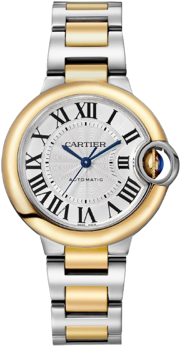 Nổi như một quả bóng bay và có màu xanh lam như viên đá cabochon được đặt an toàn bên cạnh, chiếc đồng hồ Ballon Bleu của Cartier mang đến nét thanh lịch cho cả cổ tay nam và nữ. Các chữ số La Mã được dẫn hướng trên đường đi của chúng bởi một cơ chế lên dây cót màu xanh lam đậm. Với các đường cong lồi của vỏ, mặt số guilloché, kim hình thanh kiếm và các mắt xích được đánh bóng hoặc hoàn thiện bằng satin của vòng đeo tay... chiếc đồng hồ Ballon Bleu của Cartier lướt qua thế giới chế tác đồng hồ Cartier. Đồng hồ Ballon Bleu de Cartier 33 mm. Bộ máy cơ học với dây cót tự động. Vỏ thép. Núm vặn bằng vàng vàng 18K (750/1000) có khía đính spinel hình cabochon tổng hợp. Mặt số guilloché mạ bạc. Kim hình thanh kiếm bằng thép xanh. Pha lê Sapphire. Dây đeo hai tông màu có thể thay đổi. Độ dày: 10,16 mm. Chống nước lên đến 3 bar (khoảng 30 mét/100 feet). Kính hình vuông. Núm Xanh.