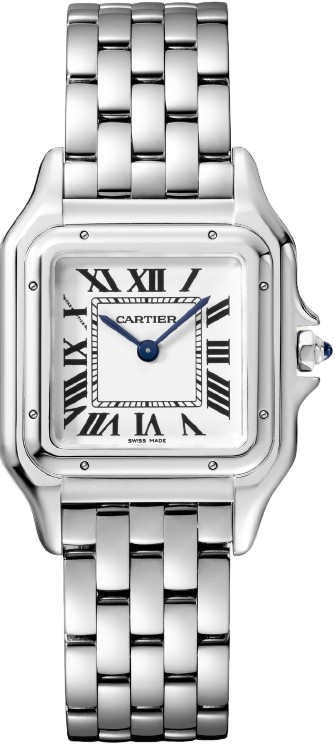 Đồng hồ cũng là một món trang sức tuyệt đẹp, panthère de cartier là một trong những thiết kế đặc biệt nhất của cartier. được tạo ra vào những năm 80 và hiện đại hơn bao giờ hết, đây là biểu tượng phong cách thực sự dành cho những người phụ nữ không bao giờ bị bỏ qua. mẫu trung bình. Bộ máy thạch anh. Núm chỉnh giờ được đính spinel xanh tổng hợp. Mặt số mạ bạc. Kim hình thanh kiếm bằng thép xanh. Dây đeo bằng thép. Chống nước đến 3 bar (khoảng 30 mét). Kích thước 36,5 mm x 26,7 mm. Chất liệu thép. Núm màu xanh. Khả năng chống nước lên đến 3 bar (~30 mét). Kính hình vuông. Chất liệu mặt sau vỏ thép. Độ dày vỏ 6,44 mm. Chức năng đồng hồ giờ, phút. Hình dáng kim hình thanh kiếm. Màu kim màu xanh. Chất liệu kim thép không hợp kim