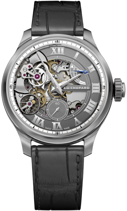 LUC Full Strike – Người chiến thắng giải Grand Prix D'horlogerie De Genève năm 2017 – Đang mang một màu sắc mới. Phiên bản mới nhất của chiếc đồng hồ lặp lại phút đầu tiên của Chopard được bố trí theo tông màu xám. Nó không mất đi đặc tính kỹ thuật mang tính cách mạng cũng như chất lượng âm thanh độc đáo. Giờ, phút và phút được đánh dấu bằng búa gõ vào cồng sapphire để tạo ra tiếng chuông trong trẻo. Đây là một chiếc đồng hồ thực sự nổi bật, nổi bật bởi thiết kế nguyên bản, vỏ thép cứng, độ hoàn thiện Poinçon De Genève tuyệt vời và trên hết là giai điệu du dương đặc biệt của nó. Tinh tế và dễ đeo, nó thể hiện sự tinh tế nhất về chuyên môn, tính sáng tạo và chất lượng tạo nên sự khác biệt cho Bộ sưu tập LUC.