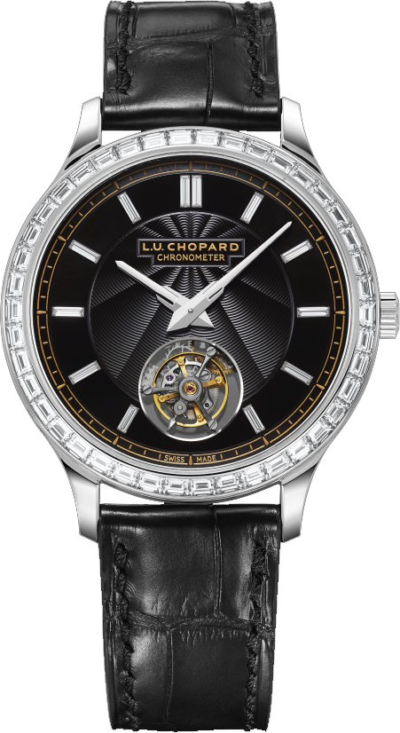 Với chiếc đồng hồ LUC Flying T Twin Baguette mới, Chopard giới thiệu một chiếc đồng hồ mới trang bị bộ máy tourbillon bay mới. Vừa tiên tiến về mặt kỹ thuật vừa mang tính thẩm mỹ, tác phẩm này còn đặc biệt bởi sức hấp dẫn đáng chú ý: mặt số bằng vàng được chạm khắc bằng tay, tỷ lệ hoàn hảo và vỏ bạch kim siêu mỏng nạm kim cương cắt baguette khiến đây trở thành một tác phẩm đặc biệt cho bộ sưu tập LUC. . Dòng sản phẩm giới hạn cực kỳ tinh tế chỉ 10 chiếc này được thiết kế dành cho những quý ông đương đại sành sỏi về đồng hồ đẹp, được chứng nhận bởi Geneva Seal