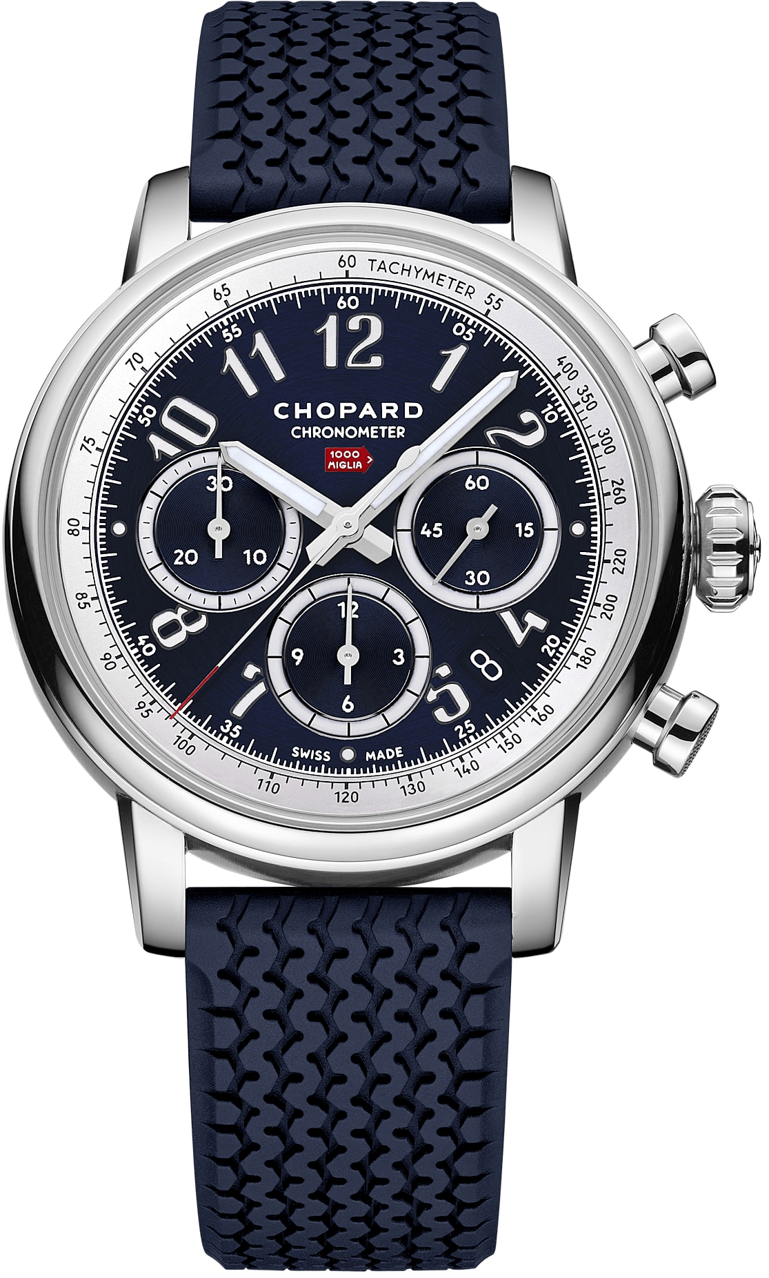 Được chế tác với độ chính xác cao và thấm đẫm tinh thần của một hành trình chung, phiên bản Mille Miglia Classic Chronograph này là lời tri ân dành cho mối liên kết vượt thời gian giữa Chopard và Jacky Ickx, tay đua xe vô địch và là đại sứ lâu năm của thương hiệu, người đã chia sẻ niềm đam mê và cảm xúc của cuộc đua 1000 Miglia với Chopard trong hơn 35 năm. Từ những chi tiết được thiết kế tỉ mỉ đến tay nghề thủ công tinh xảo, chiếc đồng hồ này thể hiện tinh thần hợp tác và sự tận tâm đã định hình mối quan hệ này trong suốt những năm qua. Được sản xuất với số lượng giới hạn 250 chiếc trên toàn thế giới, bộ sưu tập này mang đến cơ hội hiếm có để sở hữu một phần lịch sử. Chất liệu: Thép không gỉ. Đường kính vỏ: 41 mm. Độ dày: 12,90 mm. Mặt số: Màu xanh lam sơn mài, hoàn thiện chải satin tròn, chữ số Ả Rập phủ Super-LumiNova. Chống nước: 50 mét. Mặt sau vỏ: Kính sapphire trong suốt. Chất liệu núm vặn: Thép không gỉ. Loại núm vặn: Núm vặn kiểu vít. Mặt kính: Kính sapphire. Với khả năng dự trữ năng lượng 54 giờ và chức năng dừng giây, bộ máy chronograph cơ khí tự động đạt chứng nhận chronometer này hoạt động ở tần số 28.800 dao động mỗi giờ (4Hz). Chiếc đồng hồ này có kim giờ và kim phút trung tâm, kim giây nhỏ và hiển thị ngày, tất cả đều thể hiện sự chính xác và thanh lịch đặc trưng của Chopard. Loại máy: Máy cơ tự động. Chức năng: Bộ đếm 12 giờ, bộ đếm 30 phút, kim giây chronograph, ngày, giờ và phút, kim giây nhỏ. Tính năng bổ sung: Chronograph. Chứng nhận: Đồng hồ bấm giờ được chứng nhận (COSC). Tần số: 4 Hz (28.800 dao động mỗi giờ). Độ dày bộ máy: 6,10 mm. Số chân kính: 37. Loại khóa: Khóa ghim. Chất liệu khóa: Thép không gỉ. Dây đeo: Dây cao su màu xanh lam, thiết kế liền mạch.