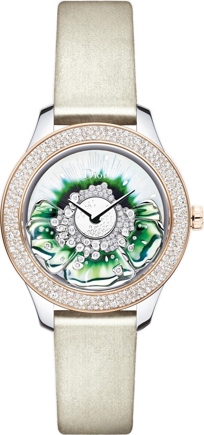 Cũng giống như các loại vải satin, vải nhung và vải taffeta có cấu trúc tô điểm cho những bộ váy dự tiệc xa hoa trong xưởng thời trang cao cấp của Dior, bộ sưu tập Dior Grand Bal tự hào có các sợi vàng, lưới, lụa, lông vũ và đá cũng như đôi cánh bọ cánh cứng. Sự đổi mới về kỹ thuật chế tạo đồng hồ hiện đang phục vụ cho sự nữ tính. Chất liệu tinh tế và kính vạn hoa màu sắc gợi lên những quả bóng ma thuật vô cùng yêu quý của Monsieur Dior, mời gọi người mặc lướt lên sàn nhảy.