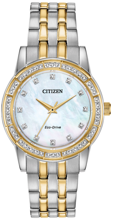 Hãy làm mới bộ sưu tập đồng hồ của bạn trong mùa này nhé các quý cô với trang trí Pha lê CITIZEN Silhouette bằng pha lê Swarovski® trên viền. Được thể hiện ở đây với vỏ và vòng đeo tay bằng thép không gỉ hai tông màu với mặt số Xà cừ màu trắng. Sử dụng công nghệ Eco-Drive của chúng tôi – được cung cấp năng lượng bằng ánh sáng, bất kỳ ánh sáng nào. Không bao giờ cần pin. Số cỡ nòng E031.