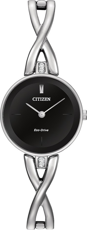 Những chiếc Vòng tay Citizen® Silhouette tinh xảo này có thiết kế cổ điển bằng thép không gỉ và mặt số màu đen đậm với những đường nét bóng bẩy, đơn giản và vượt thời gian.
