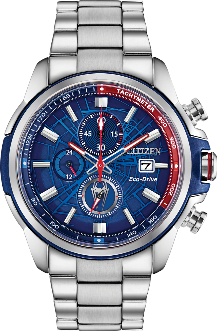 Gần giống như có khả năng của loài nhện, chiếc đồng hồ Marvel Spider-Man mới này của Citizen sẽ khiến bạn cảm thấy mình như một Siêu anh hùng. Một chiếc đồng hồ dừng trưng bày với thiết kế logo và web mang tính biểu tượng với màu xanh lam và đỏ dễ nhận biết. Nổi bật với vỏ thép không gỉ với lớp mạ màu xanh lam, dây đeo bằng thép không gỉ, mặt số màu xanh rực rỡ với thiết kế dạng lưới và các điểm nhấn màu đỏ có lịch ngày. Sử dụng công nghệ Eco-Drive của chúng tôi – được cung cấp năng lượng bằng ánh sáng, bất kỳ ánh sáng nào. Không bao giờ cần pin. ©2019 MARVEL