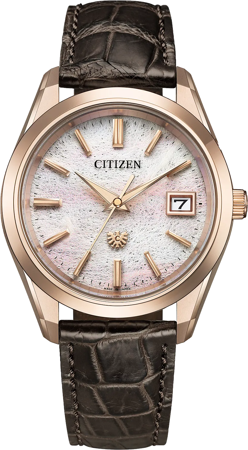 Độ chính xác vượt trội đáp ứng các tiêu chuẩn chất lượng cao nhất của CITIZEN. Đại diện cho sự theo đuổi không ngừng nghỉ về tinh hoa của đồng hồ, mẫu đồng hồ đặc biệt này là người bạn đồng hành thanh lịch lý tưởng, cân bằng hoàn hảo giữa sự tinh tế về mặt cơ khí với sức hấp dẫn thẩm mỹ. Vỏ Super Titanium™ tông vàng hồng 38,3mm sở hữu các mặt cắt sắc nét với lớp hoàn thiện chải xước và đánh bóng, kết hợp với dây đeo bằng da cá sấu màu nâu sang trọng, mang đến vẻ ngoài nổi bật, đẳng cấp. Phối màu Duratect Sakura Pink này nắm bắt được tinh túy của "Okashi", một tình cảm Nhật Bản thể hiện sự ngọt ngào và vẻ đẹp, với mặt số lấy cảm hứng từ những đám mây mềm mại xuất hiện trước bình minh. Mặt số được bảo vệ bởi tinh thể sapphire hình cầu kép, pha trộn giữa sắc trắng và hồng dịu nhẹ, được chế tác bằng kỹ thuật giấy washi Nhật Bản. Các chi tiết tông vàng hồng xuyên suốt tạo nên sự ấm áp và chiều sâu, tạo nên sự tương tác quyến rũ giữa ánh sáng, kết cấu và màu sắc. Phía dưới màn hình là biểu tượng đại bàng, tượng trưng cho hai lý tưởng song hành của The CITIZEN – tầm nhìn xa và sự tận tâm theo đuổi lý tưởng, cũng như mối liên kết bền vững giữa đồng hồ và người đeo. Bên trong chiếc đồng hồ là bộ máy Citizen Caliber A060, chính xác đến ±5 giây mỗi năm và được trang bị công nghệ Eco-Drive hoạt động bền vững bằng ánh sáng – bất kỳ loại ánh sáng nào – và không bao giờ cần pin. Các tính năng tiên tiến bao gồm lịch vạn niên, chỉ báo dự trữ năng lượng, cảnh báo mức sạc không đủ, chức năng tiết kiệm năng lượng, phát hiện sốc, tự động điều chỉnh vị trí kim, điều chỉnh giờ địa phương độc lập và chức năng cập nhật lịch chính xác vào nửa đêm. Khả năng chống nước ở độ sâu 100 mét. Giới hạn 400 chiếc không đánh số trên toàn thế giới.