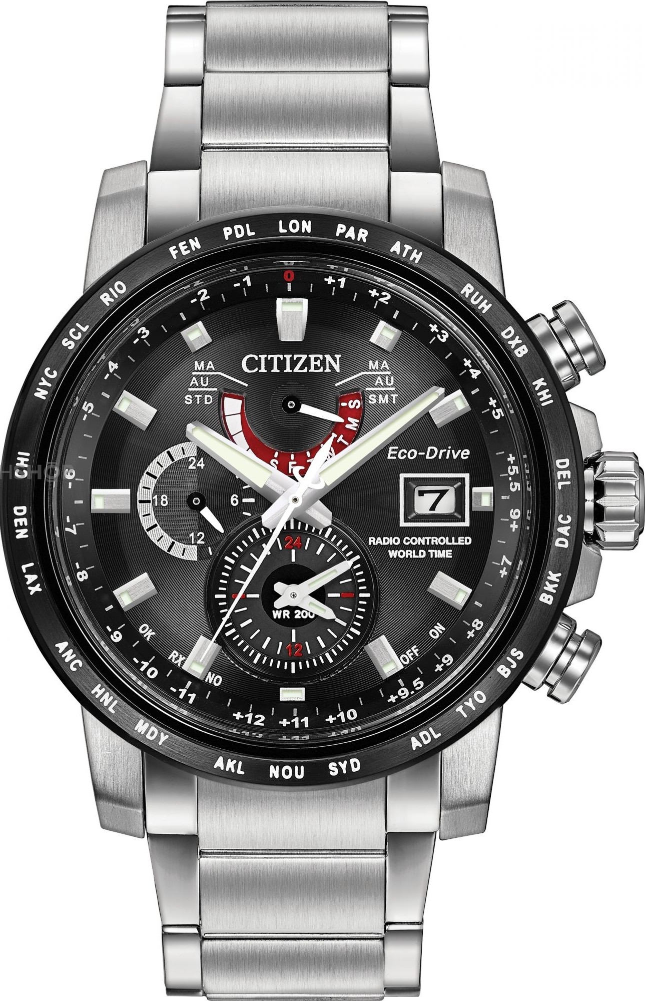 Táo bạo, mạnh mẽ và đa chiều, Citizen® giới thiệu chiếc đồng hồ mới nhất của mình trong dòng World Time AT. Nổi bật với công nghệ chấm công nguyên tử với khả năng điều chỉnh thời gian đồng bộ ở 26 múi giờ. Viền xoay mạ ion màu đen. lịch vạn niên, thời gian kép 12/24 giờ, báo thức và dự trữ năng lượng cũng là những tính năng được bổ sung cho chiếc đồng hồ nâng cấp này.