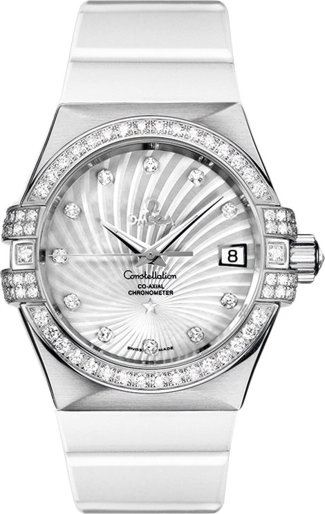 Mẫu này có mặt số xà cừ trắng được trang trí hoa văn siêu tân tinh, các cọc số nạm kim cương và cửa sổ ngày ở vị trí 3 giờ, đồng thời được bao phủ bởi tinh thể sapphire chống trầy xước. Vành đồng hồ nạm kim cương với các vấu nạm kim cương được gắn trên vỏ bằng vàng trắng 18K đánh bóng đường kính 35 mm và đi kèm dây đeo cao su màu trắng.