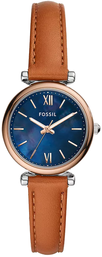Fossil ES4701 Carlie Mini Three-Hand Tan Leather Watch 28mm
