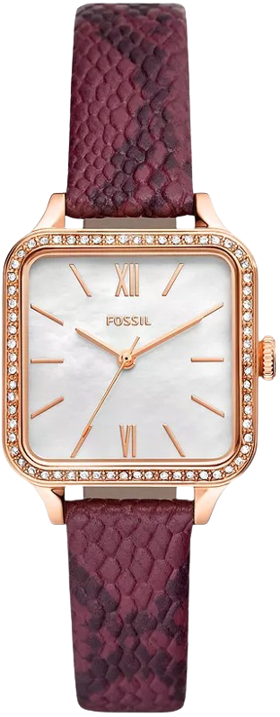 Chiếc Colleen 28mm này sở hữu mặt số xà cừ trắng, bộ máy ba kim và dây đeo bằng da màu đỏ. Các sản phẩm da Fossil hỗ trợ sản xuất có trách nhiệm thông qua Leather Working Group. Kích thước vỏ: 28mm. Bộ máy: Quartz ba kim. Nền tảng: COLLEEN. Chất liệu dây đeo: Da. Màu dây đeo: Đỏ. Khả năng chống nước của vỏ: 3 ATM. Chất liệu vỏ: Thép không gỉ. Màu vỏ: Vàng hồng. Màu mặt số: Xà cừ trắng. Màu dây đeo thời trang: Đỏ. Khả năng tương thích có thể thay thế: 14mm. Chiều rộng dây đeo: 14mm. Khóa: Khóa dây đeo một chấu. Chu vi bên trong dây đeo: 185 +/- 5mm. Loại tinh thể: Khoáng chất. Loại pin: SR626SW