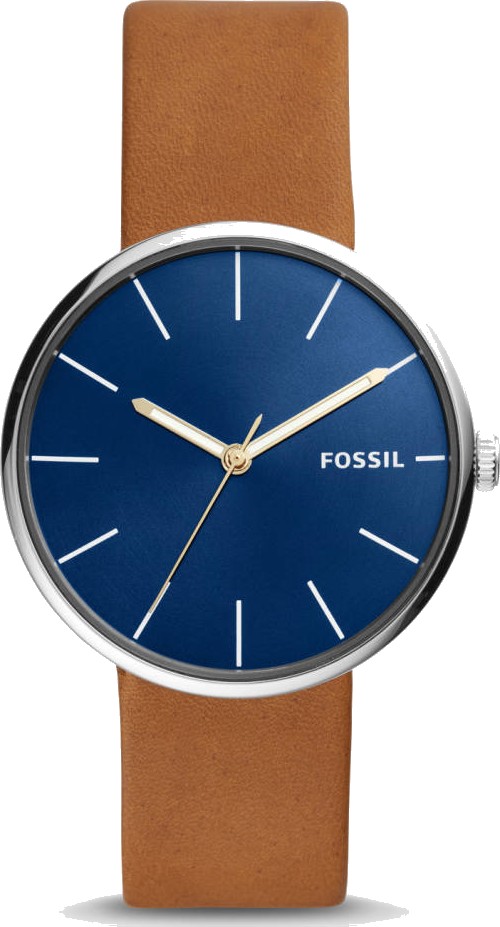 Dây đeo: Da nâu. Mặt số: Xanh lam có vạch chỉ số, kim phát quang