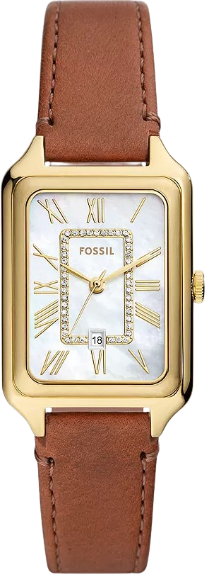 Một biểu tượng đích thực từ kho lưu trữ của chúng tôi, chiếc đồng hồ Raquel hình chữ nhật được cập nhật cho thời điểm hiện tại. Mỏng và đa năng, chiếc đồng hồ này có mặt đồng hồ xà cừ với khung bên trong lấp lánh, chuyển động ngày ba kim và dây đeo bằng da màu nâu. Các sản phẩm da Fossil hỗ trợ sản xuất có trách nhiệm thông qua Nhóm làm việc về da. Kích thước vỏ: 26MM. Bộ máy: Quartz ba kim ngày. Nền tảng: RAQUEL. Chất liệu dây đeo: Da. Màu dây đeo: Nâu. Khả năng chống nước của vỏ: 5 ATM. Chất liệu vỏ: Thép không gỉ. Màu vỏ: Vàng. Màu mặt số: Xà cừ trắng. Màu dây đeo thời trang: Nâu vừa. Khả năng tương thích có thể thay thế: 14MM. Chiều rộng dây đeo: 14MM. Khóa: Khóa dây đeo một chấu. Chu vi bên trong dây đeo: 175 +/- 5MM. Loại tinh thể: Khoáng sản. Loại pin: SR621SW