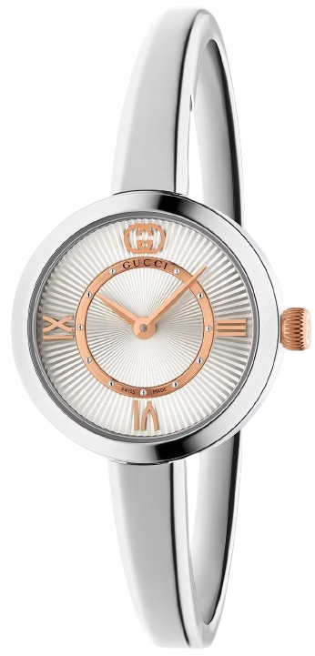 Dòng đồng hồ Model 2000 với kiểu dáng tối giản, tinh tế kết hợp phong cách Ý với tay nghề thủ công Thụy Sĩ. Trong bộ sưu tập mới nhất, dòng sản phẩm này giới thiệu chiếc vòng tay kiểu bangle, một thiết kế thanh lịch và tinh tế với cơ chế đóng mở dễ dàng. Vỏ thép không gỉ 24mm. Mặt số guilloché màu bạc với các đường sọc nhựa trắng ở cạnh vỏ. Mặt kính sapphire với lớp phủ chống phản chiếu. Vòng tay thép không gỉ 16cm. Bộ máy quartz 5 ATM (50 mét/164 feet). YA167513. Kích thước cổ tay 6'3". Sản xuất tại Thụy Sĩ.