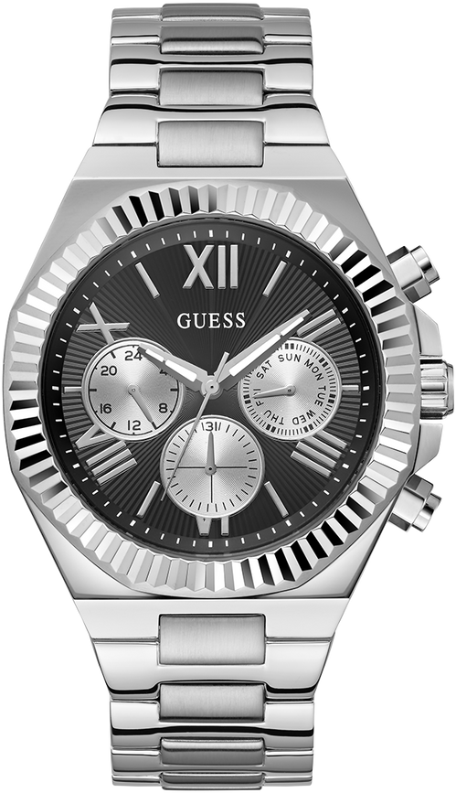 Guess Equity Mens Silver Tone Multi-function Watch 44mm
