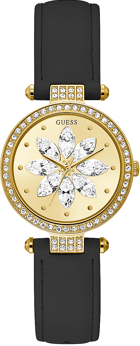 Chiếc đồng hồ vàng hồng tuyệt đẹp này sẽ tạo thêm nét hoàn thiện cho trang phục của bạn. Nổi bật với mặt số có chi tiết đính pha lê hình bông hoa và gờ có chi tiết đính pha lê, đồng hồ cũng có dây đeo bằng da chính hãng màu trắng.