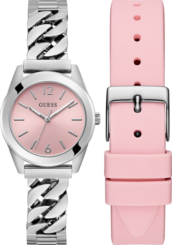 Phong cách nổi bật này có tất cả sự thanh lịch của một chuỗi vòng đeo tay với lợi ích bổ sung là xem giờ trong thiết kế đồng hồ độc đáo này với vành bezel trơn và mắt xích, hoàn chỉnh với các mắt xích g tự điều chỉnh. Vòng đeo tay bằng bạc của nó có thể thay thế bằng dây đeo silicon mịn màu hồng. Đường kính vỏ 32 mm. Màu vỏ Tông bạc. Hình dạng vỏ Tròn. Chất liệu vỏ Thép tái chế. Hoàn thiện vỏ được đánh bóng. Chiều rộng dây đeo / càng 16 mm. Dây đeo / Màu sắc Tông bạc. Chất liệu dây đeo Dây đeo có thể thay thế. Khả năng chống nước ở độ sâu 30 mét. Chiếc đồng hồ này chỉ phù hợp để rửa tay hoặc vô tình bị nước bắn vào. Không thích hợp để bơi lội hoặc lặn. Để duy trì khả năng chống nước, không nhấn bất kỳ nút nào khi đồng hồ bị ướt. Quartz Analog Một bộ máy thạch anh analog được cung cấp năng lượng bởi pin. Bộ máy thạch anh có độ chính xác cao, có khả năng giữ thời gian trong vòng mili giây mỗi ngày. Mineral Crystal Một loại kính cường lực làm từ silica có khả năng chịu nhiệt và chống trầy xước, mang lại khả năng hiển thị rõ ràng và độ bền chắc chắn hàng ngày. Màu mặt số Hồng. Mặt kính pha lê Mặt kính khoáng