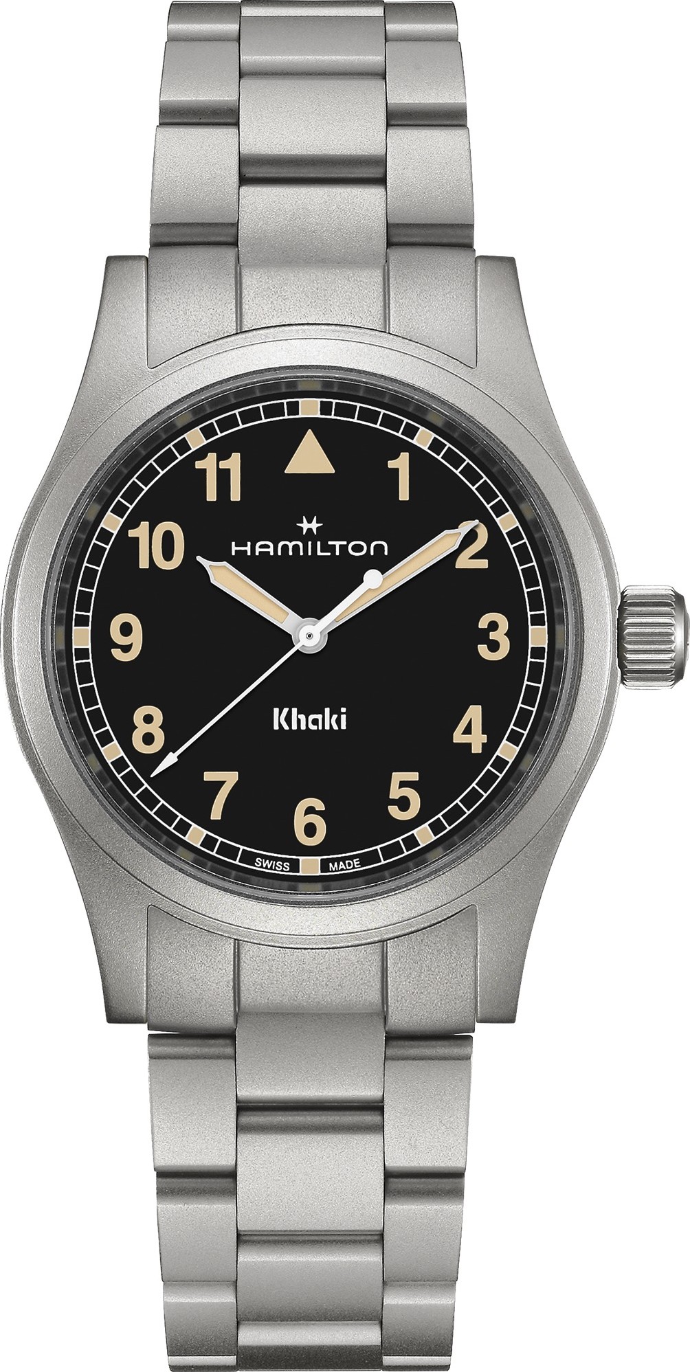 Được thiết kế cho những chuyến phiêu lưu, Khaki Field Quartz là người bạn đồng hành đáng tin cậy và bền bỉ, sẵn sàng cho mọi hành trình khám phá. Lấy cảm hứng từ danh tiếng của Hamilton về độ chính xác, đổi mới và thiết kế tập trung vào tiện ích, Khaki Field Quartz kết hợp mặt số đen 38mm vượt thời gian với dây đeo kim loại hiện đại. Khám phá bộ sưu tập Khaki Field của chúng tôi. Caliber F06.105. Bộ sưu tập Khaki Field. Bộ máy Quartz. Kích thước vỏ 38mm. Độ dày (mm) 8.3. Màu mặt số Đen. Chất liệu vỏ: Thép không gỉ. Tinh thể Sapphire. Chiều rộng càng 20mm. Độ chống nước: 5 bar (50m)/73 psi (164ft). Mã dây đeo: H6050000331. Loại dây: Thép không gỉ. Kiểu khóa: Khóa gập. Chiều rộng khóa: 20mm