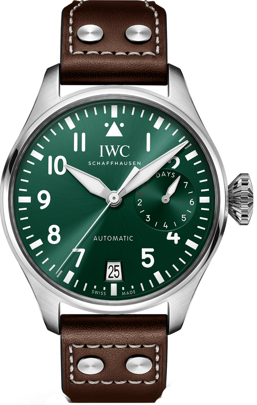Vỏ thép không gỉ, Tự động, tự lên dây cót, Đường kính 46,2 mm, Mặt số màu xanh lá cây phát quang, Dây đeo bằng da bê màu nâu, Chiều rộng dây đeo 22,0 mm.