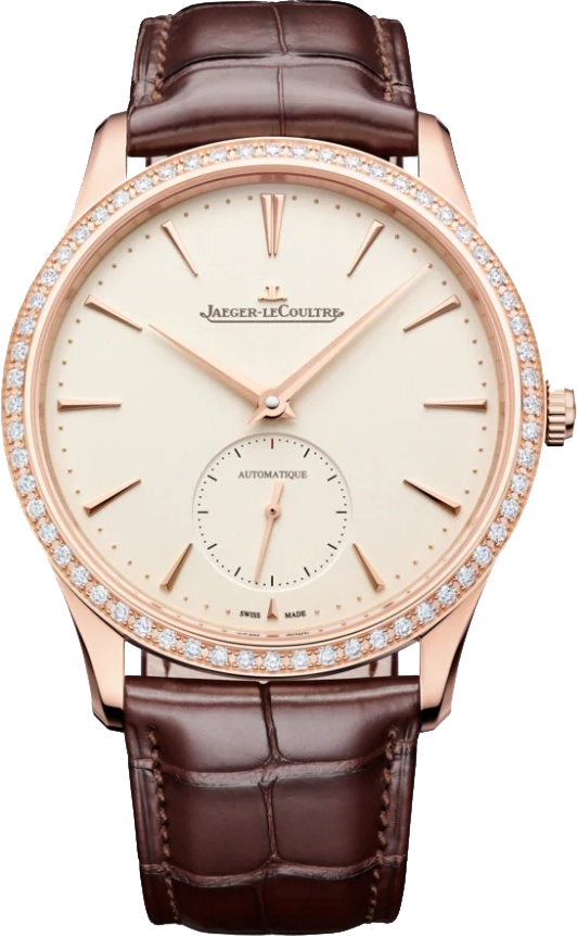 Nháy mắt ở góc nhìn ở vị trí 6 giờ, kim giây nhỏ làm nổi bật đặc tính chế tạo đồng hồ của chiếc đồng hồ Master Ultra Thin Small Seconds. Trong số các đặc điểm của chiếc đồng hồ tinh xảo này, đặc biệt nổi bật là vành bezel được hoàn thiện bằng trang sức với 60 viên kim cương tuyệt đẹp, vạch chỉ giờ mạ rhodium mới được đánh bóng và mặt số mới rạng rỡ. Được trang bị bộ chuyển động cơ học tự lên dây cót, chiếc đồng hồ hài hòa này chắc chắn sẽ làm hài lòng những người đàn ông có gu thẩm mỹ sành điệu.