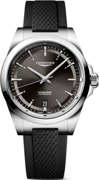 Chiếc đồng hồ hàng ngày đỉnh cao, Conquest cũng là bộ sưu tập LONGINES đầu tiên được Cục Sở hữu Trí tuệ Liên bang Thụy Sĩ bảo hộ tên gọi vào năm 1954. Kể từ đó, bộ sưu tập đã phát triển qua thiết kế và công nghệ nhưng vẫn giữ nguyên bản sắc ban đầu, toát lên sự kết hợp hài hòa giữa sự táo bạo, thiết kế đương đại và vẻ ngoài thể thao thanh lịch. Mỗi chiếc đồng hồ Conquest đều thể hiện cam kết không ngừng nghỉ của LONGINES về hiệu suất và sự xuất sắc trong ngành chế tác đồng hồ. Với những mẫu mã đa dạng, dòng Conquest là minh chứng cho sự tận tâm của LONGINES trong việc tạo ra những chiếc đồng hồ cho mọi khía cạnh của cuộc sống. Bộ sưu tập có sẵn với nhiều kích cỡ, chất liệu và màu sắc. Bộ máy cơ tự động lên dây cót, tần số dao động 25.200 vph, với lò xo cân bằng silicon đơn tinh thể, dự trữ năng lượng lên đến 72 giờ. Núm vặn vặn vít, khả năng chống nước ở độ sâu 10 bar, mặt kính sapphire chống trầy xước, phủ nhiều lớp chống phản quang ở cả hai mặt. Mặt số đen hiệu ứng tia mặt trời, phủ dạ quang Super-luminova® Thụy Sĩ. Dây đeo cao su, khóa gập an toàn kép với hệ thống điều chỉnh vi mô. Kiểu dáng Tròn. Vật liệu Thép không gỉ. Tinh thể sapphire chống xước, với nhiều lớp phủ chống phản quang ở cả hai mặt. Nắp lưng Vặn chặt và trong suốt với nắp lưng bằng tinh thể sapphire. Kích thước 41,00 mm. Khoảng cách giữa các vấu 49,10 mm. Độ dày 10,90 mm. Khoảng cách vấu 21 mm. Chống nước đến 10 bar. Đặc điểm vỏ Núm vặn vặn vào. Trọng lượng 96,0 g. Màu mặt số. Màu đen tia nắng. Vạch chỉ giờ Có vạch chỉ giờ. Kim Kim đánh bóng mạ bạc. Đặc điểm Loại chuyển động Tự động. Chức năng Giờ, phút, giây và ngày. Caliber L888. Mô tả chuyển động Chuyển động cơ học tự lên dây cót với tần số 25'200 dao động mỗi giờ, với lò xo cân bằng silicon đơn tinh thể dự trữ năng lượng lên đến 72 giờ. Vật liệu Dây đeo cao su. Màu đen. Với khóa gập bảo mật kép có hệ thống điều chỉnh vi mô. Chống từ tính Có.