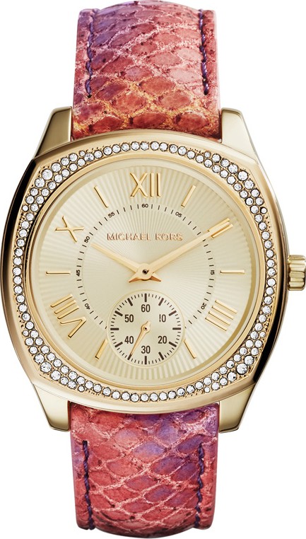 Được trang trí bằng các điểm nhấn pavé lấp lánh, chiếc đồng hồ Bryn của Michael Kors này nổi bật với dây đeo sơn trăn.