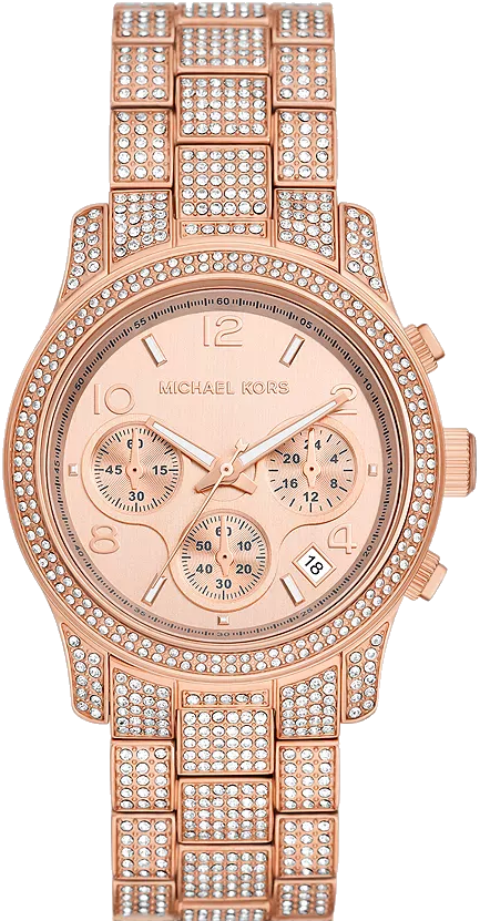 Bắt mắt ngay từ cái nhìn đầu tiên, chiếc đồng hồ Runway mới của chúng tôi được định hình bằng vành bezel khảm pavé lấp lánh và dây đeo dạng vòng đeo tay. Được cập nhật với các mặt số phụ nhô lên, phong cách lộng lẫy này được chế tác từ thép không gỉ tông vàng hồng và có các chi tiết bấm giờ để đo thời gian chính xác. Đeo riêng hoặc kết hợp với đồ trang sức bổ sung để tăng thêm sự ấn tượng.