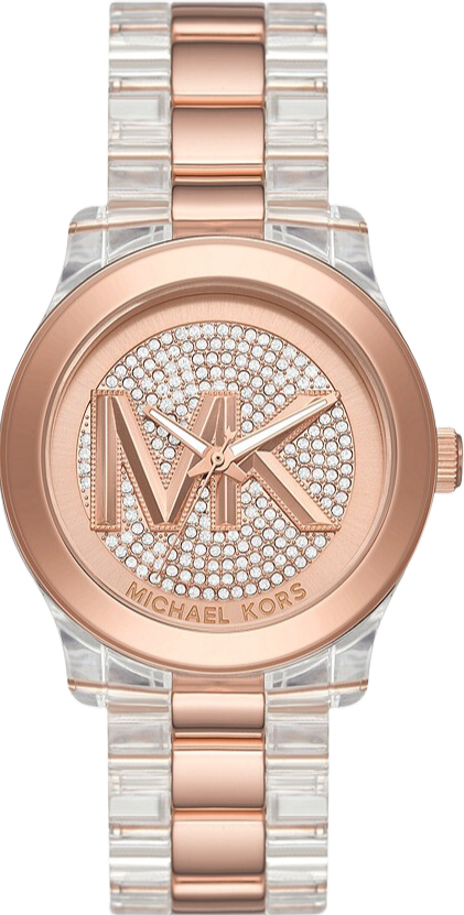 Một chiếc đồng hồ nhỏ tạo nên tác động lớn, chiếc đồng hồ Runway yêu quý của chúng tôi được cập nhật theo phong cách hiện đại. Được chế tác từ sự kết hợp giữa thép không gỉ tông vàng hồng và acetate, kiểu dáng bắt mắt này có mặt số pavé sáng bóng được hoàn thiện bằng chữ viết tắt MK của chúng tôi. Kết hợp với đồ trang sức bổ sung để có vẻ ngoài nhiều lớp, sành điệu.
