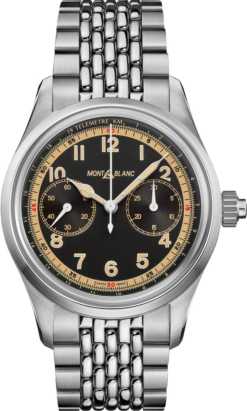 Đồng hồ Minerva từ những năm 1920 và 1930 được thiết kế cho mục đích quân sự và thám hiểm. Tái hiện lại những chiếc đồng hồ huyền thoại này, dòng sản phẩm Montblanc 1858 thể hiện tinh thần thám hiểm núi non, thể hiện xu hướng trở về với thiên nhiên hiện đại. Montblanc 1858 Monopizer Chronograph có vỏ bằng thép không gỉ hoàn thiện bằng sa tanh 42 mm với hình khắc đặc biệt ở mặt sau vỏ. Nó có mặt số hai tông màu đen và be gợi nhớ đến những chiếc đồng hồ cổ điển và mô tả màu sắc của thiên nhiên. Đồng hồ bấm giờ có thang đo từ xa và được cung cấp bởi MB tự động của Montblanc. 25.12 Monopizer Chronograph Calibre cho biết thời gian đã trôi qua với kim giây ở giữa và bộ đếm 30 phút, cả hai đều có kim màu trắng để tạo độ tương phản với mặt số màu đen. Chiếc đồng hồ được hoàn thiện với dây đeo kỹ thuật cổ điển làm bằng thép không gỉ.